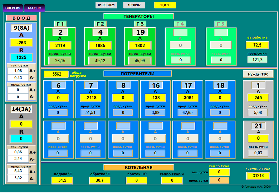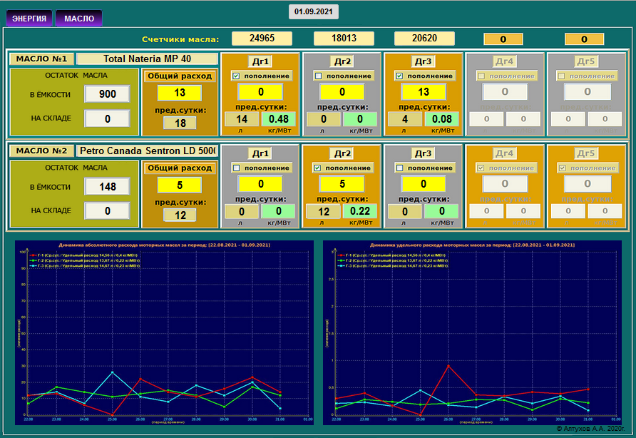 Сайт отображает расход и остаток масла используемого в генераторах.
